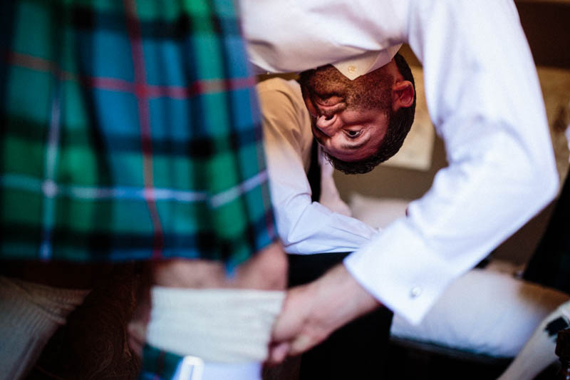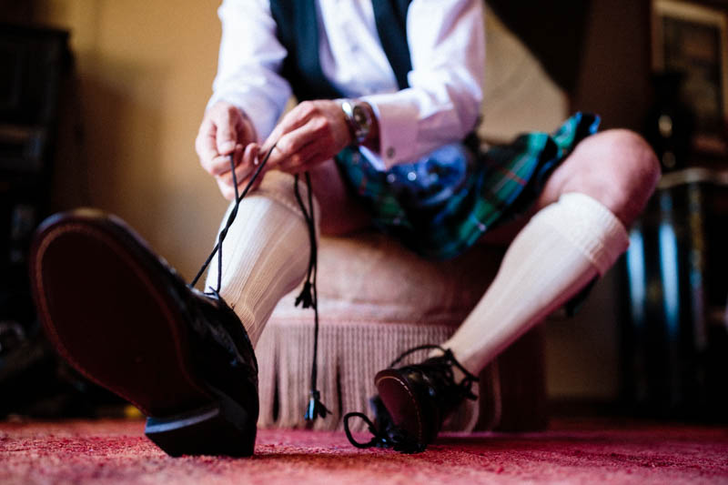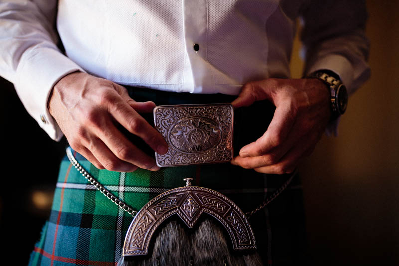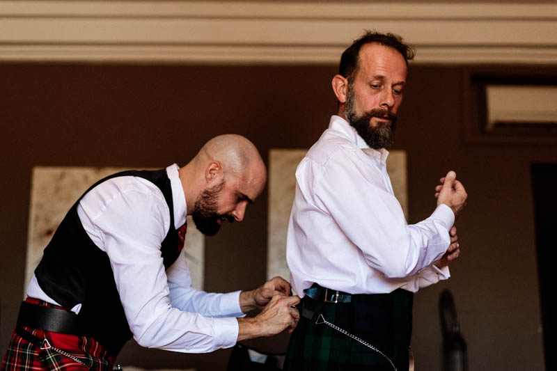 Les préparatifs d’Edward étaient pour le moins… folklorique. Etant écossais, il se devait de porter le kilt traditionnel. Ainsi que ses témoins. J’ai pu m’apercevoir que ce n’est pas aussi simple à enfiler que ça en à l’air, c’est même plus compliqué que certaines robes de mariée !
