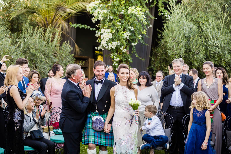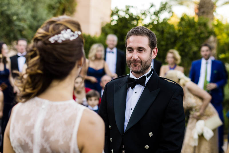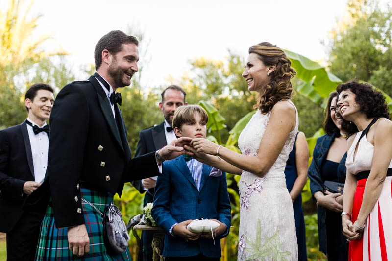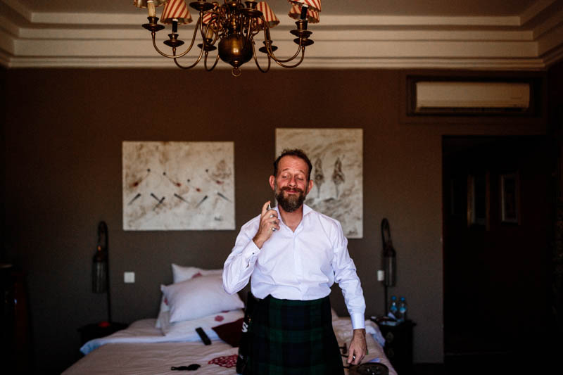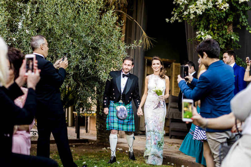 Les cérémonies laïques ou symboliques sont de loin mes préférées. En toute honnêteté je trouve la plupart des cérémonies civiles austères et sans charmes, les cérémonies religieuses souvent trop pompeuses et ennuyeuses. En revanche une cérémonie symbolique toute simple dans le jardin d’un Riad avec des écossais en Kilt et des mariés décontractés, c’est quand même vachement plus fun ! Et aussi un vrai plaisir à documenter !