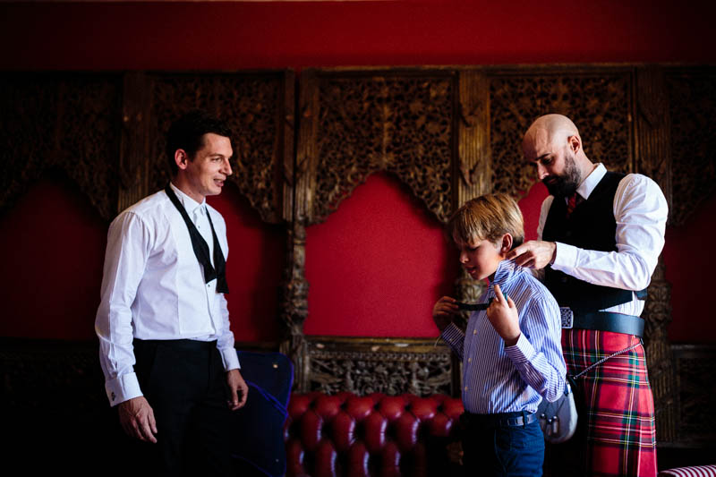 Les préparatifs d’Edward étaient pour le moins… folklorique. Etant écossais, il se devait de porter le kilt traditionnel. Ainsi que ses témoins. J’ai pu m’apercevoir que ce n’est pas aussi simple à enfiler que ça en à l’air, c’est même plus compliqué que certaines robes de mariée !