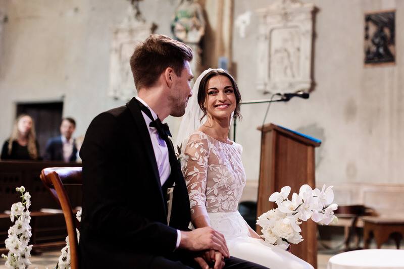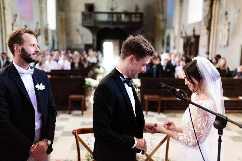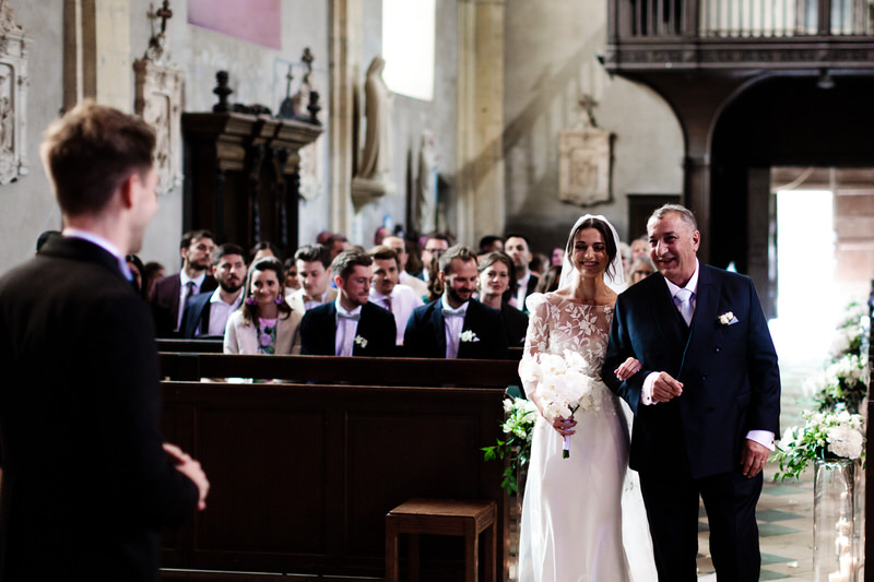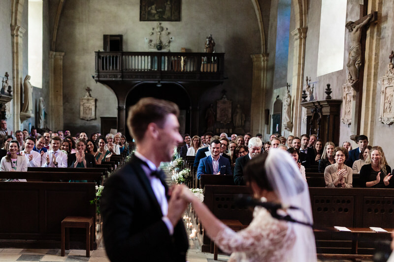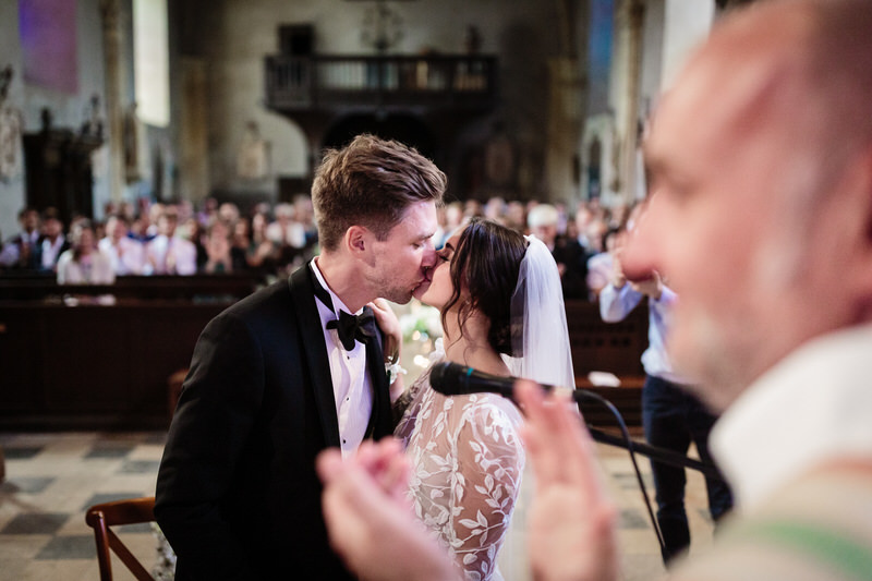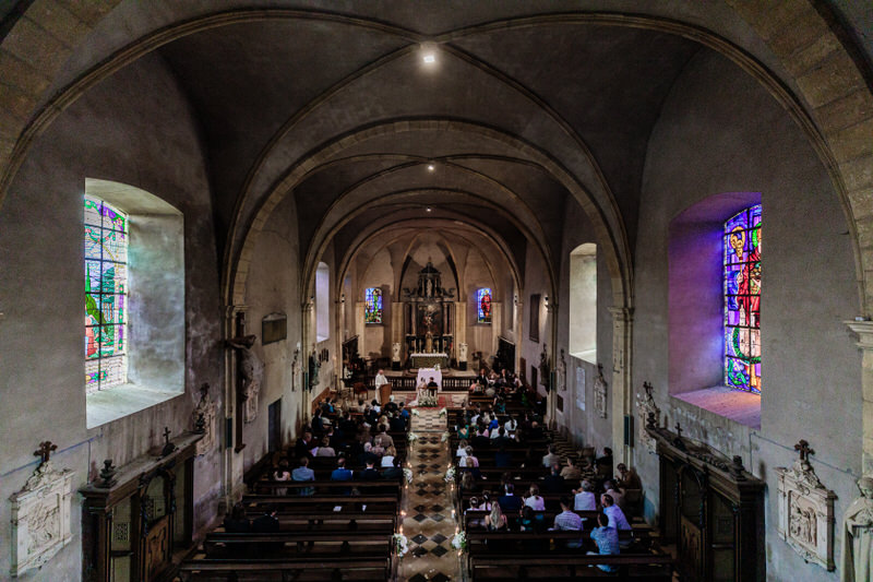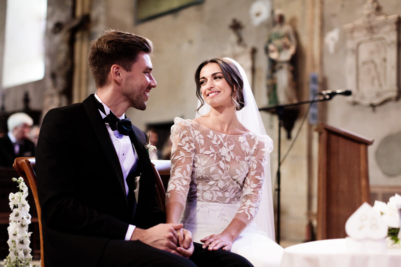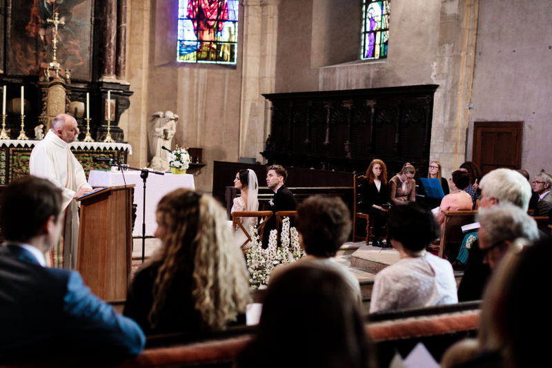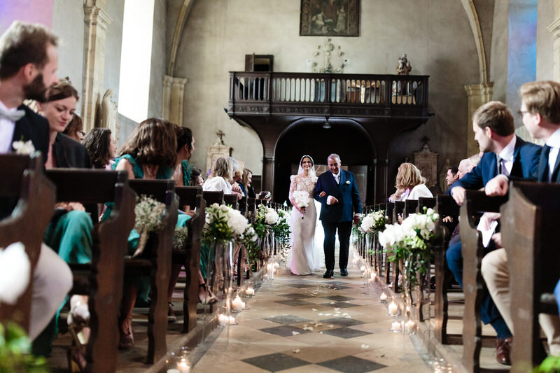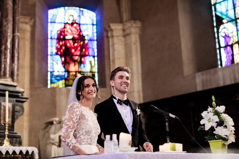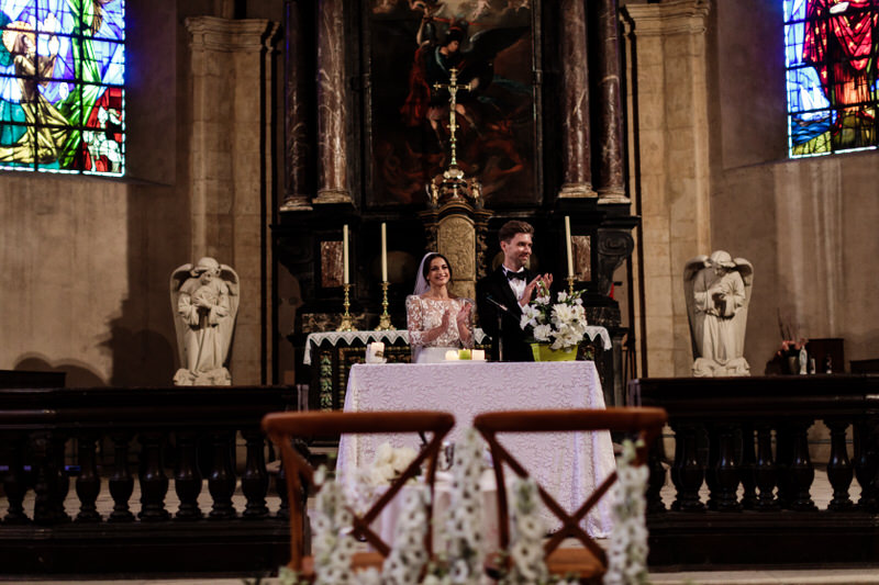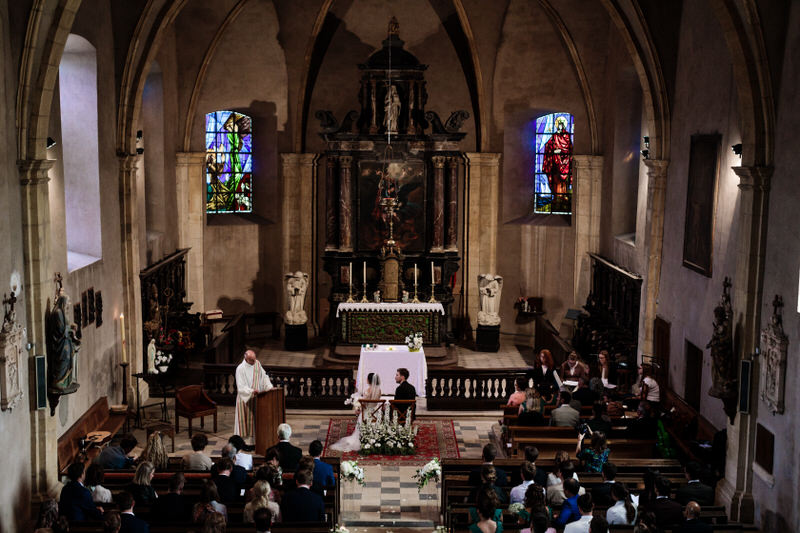 The ceremony took place in the intimate Little Chapelle on the property. The chapel is a cozy space, with beautiful stained-glass windows and an altar adorned with fresh flowers. The couple had chosen to have a religious ceremony, which added a meaningful and spiritual touch to the day.