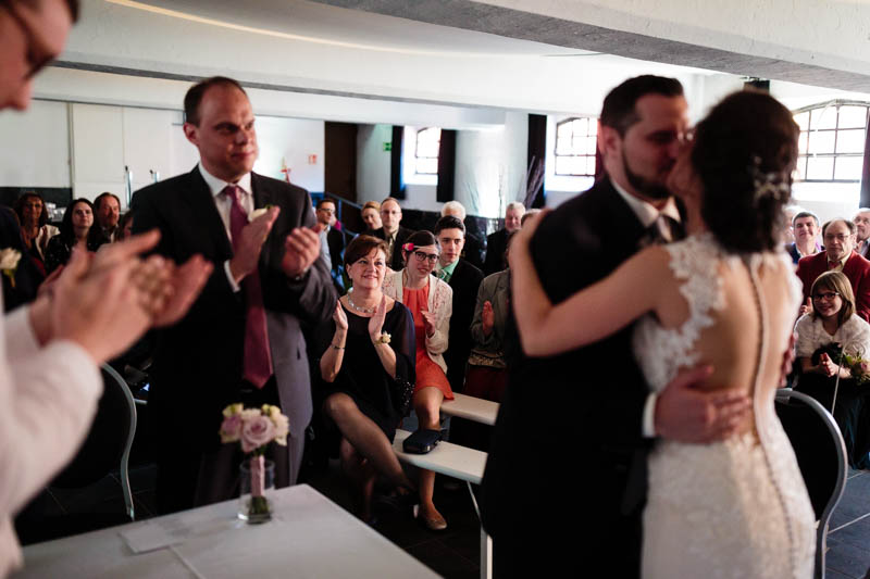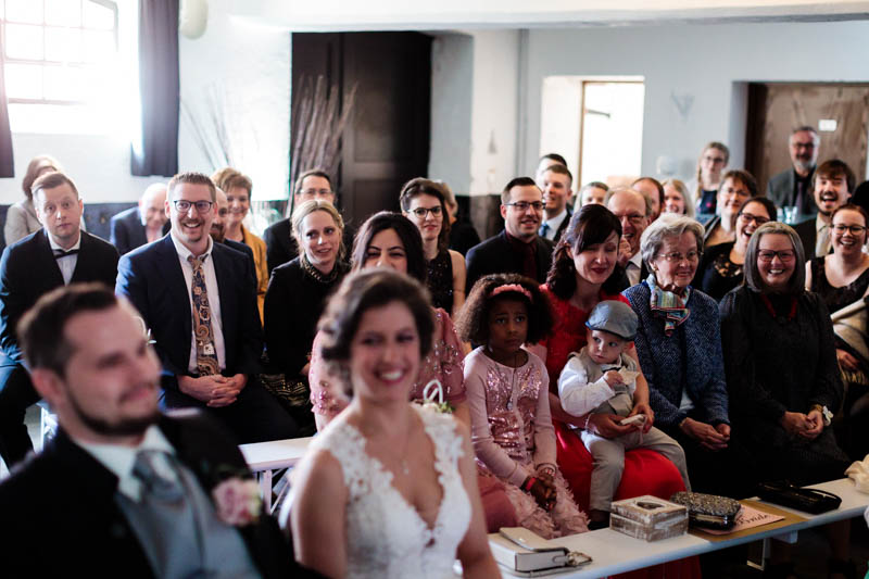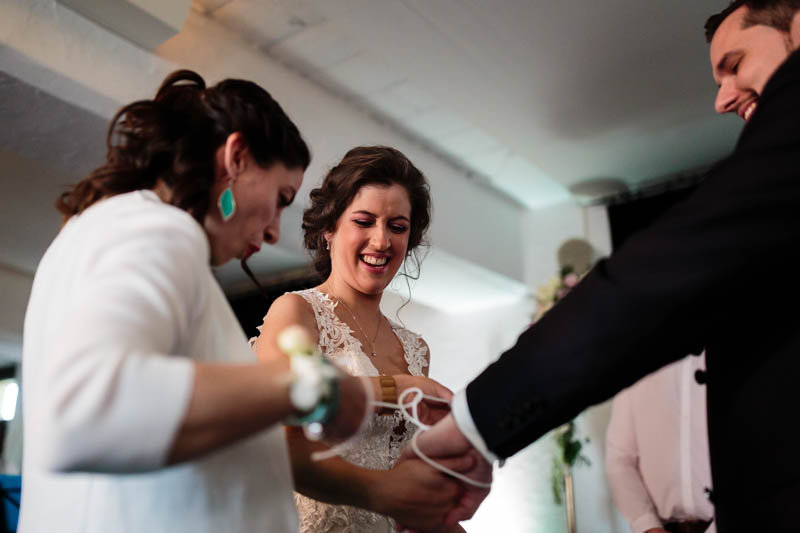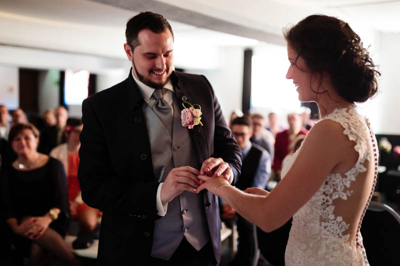 La cérémonie symbolique s’est donc déroulée en intérieur au Greiwels Haff de Bertrange. Un petit orchestre, des amis pour officiants de cérémonie et quelques rituels symboliques ont précédé l’échange de vœux des mariés. Les cérémonies symboliques sont de loin mes préférées car elles sont plus émouvantes et correspondent toujours aux mariés et à leur personnalité.