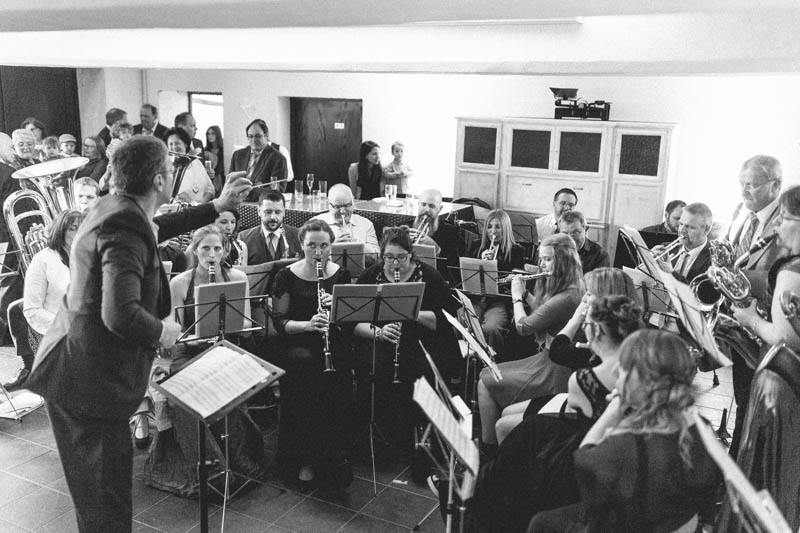 Les mariés font parti d’un Big Band, Le Union Grand-Duc Adolphe de Luxembourg, et c’est donc naturellement que la cérémonie fût suivie d’une petit concert. Le groupe a joué des standards de Disney, chers à la mariée 😊