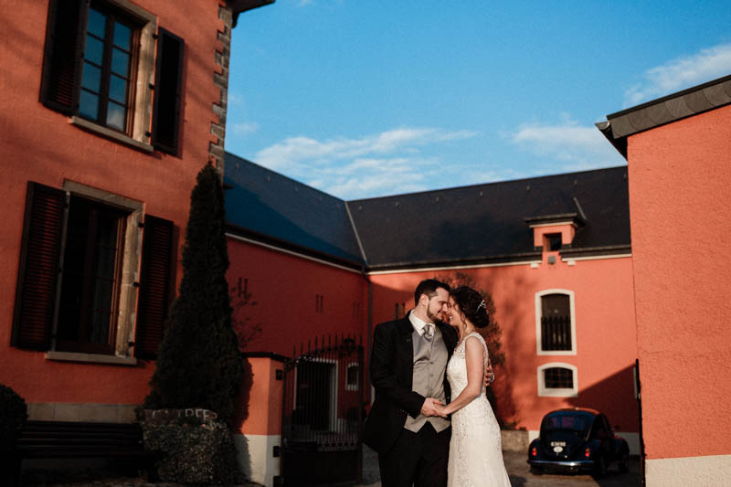 Récemment j’ai pu photographier mon premier mariage au Greiwels Haff de Bertrange, un bel endroit, tout à fait approprié à la réception de votre mariage. Celui-ci dispose d’un joli jardin où vous pourrez par exemple organiser un cocktail ou une cérémonie symbolique. Ce jour-là la météo était capricieuse et il faisait plutôt froid. Heureusement le Greiwels Haff propose la possibilité d’organiser la cérémonie laïque ou symbolique en intérieur.