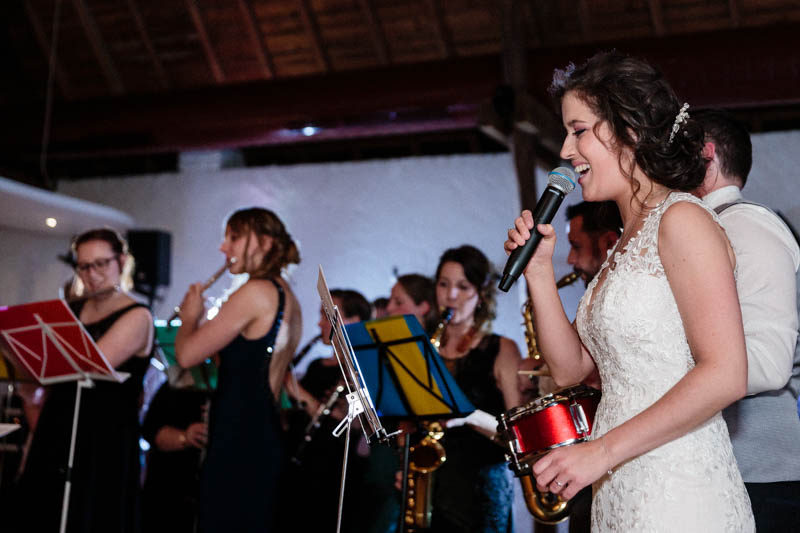 J’avais apporté mon Photobooth qui a rencontré comme d’habitude un franc succès auprès des invités. Puis de nouveau l’orchestre a mis l’ambiance en jouant quelques standards… mais cette fois avec l’aide de la mariée au chant et du marié au tambour !