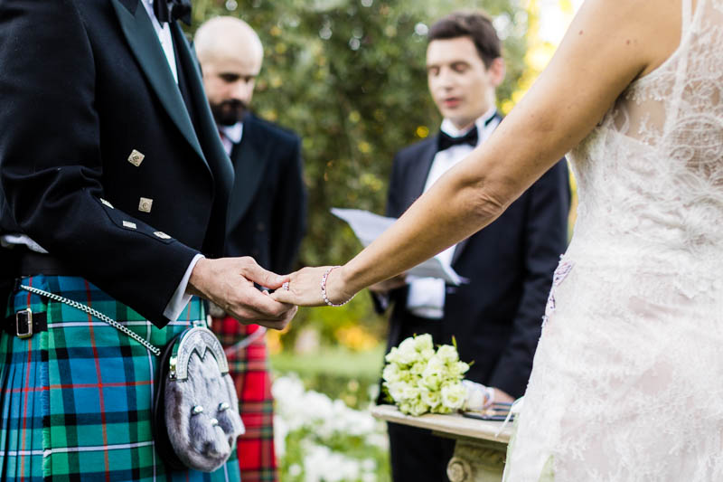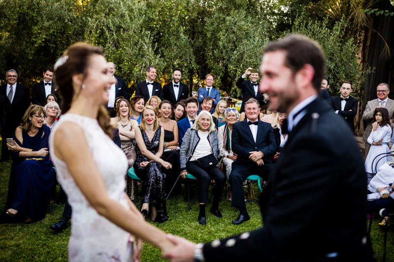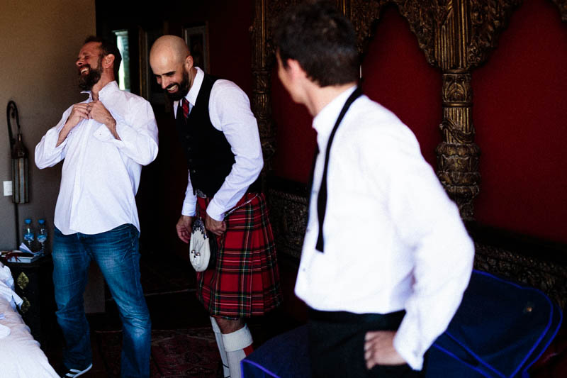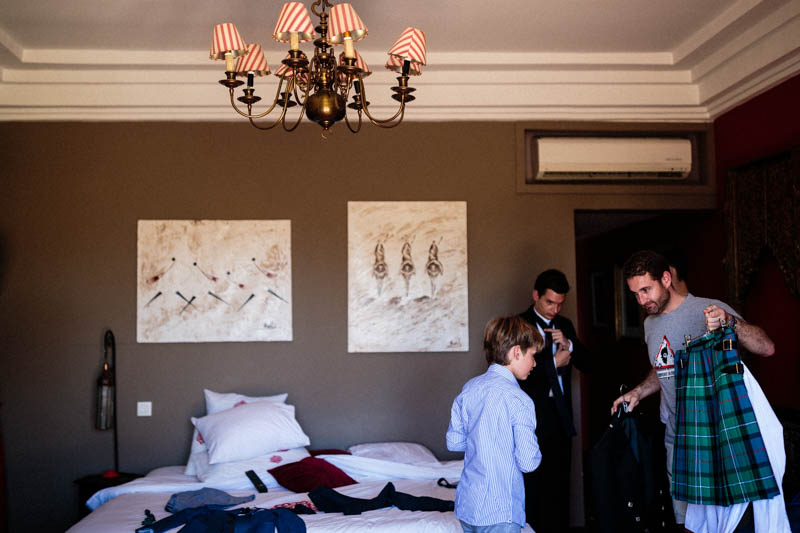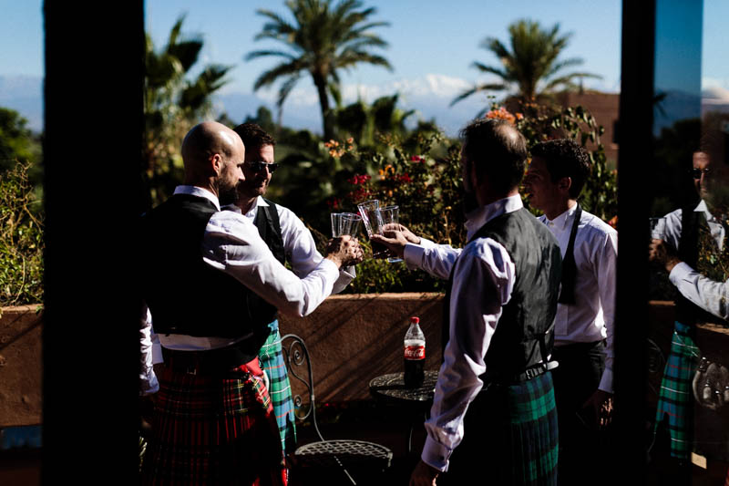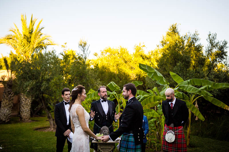 Les cérémonies laïques ou symboliques sont de loin mes préférées. En toute honnêteté je trouve la plupart des cérémonies civiles austères et sans charmes, les cérémonies religieuses souvent trop pompeuses et ennuyeuses. En revanche une cérémonie symbolique toute simple dans le jardin d’un Riad avec des écossais en Kilt et des mariés décontractés, c’est quand même vachement plus fun ! Et aussi un vrai plaisir à documenter !