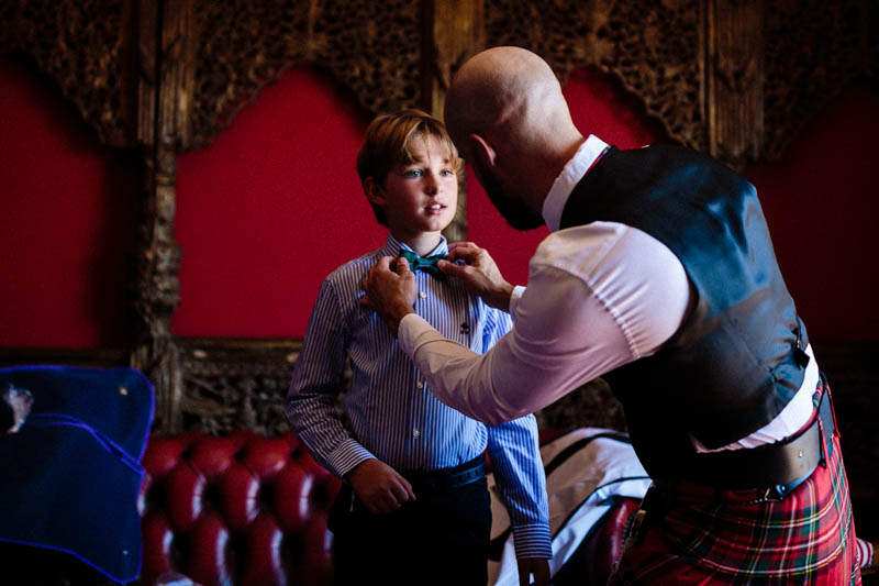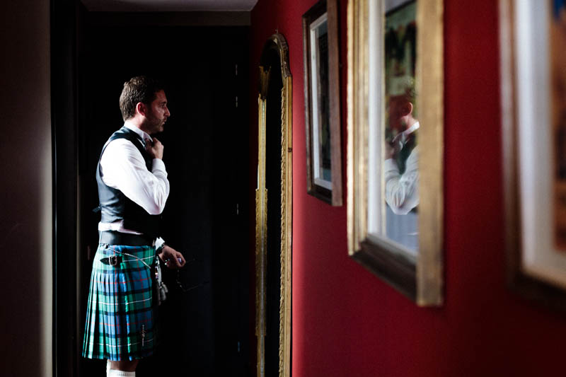 Les préparatifs d’Edward étaient pour le moins… folklorique. Etant écossais, il se devait de porter le kilt traditionnel. Ainsi que ses témoins. J’ai pu m’apercevoir que ce n’est pas aussi simple à enfiler que ça en à l’air, c’est même plus compliqué que certaines robes de mariée !