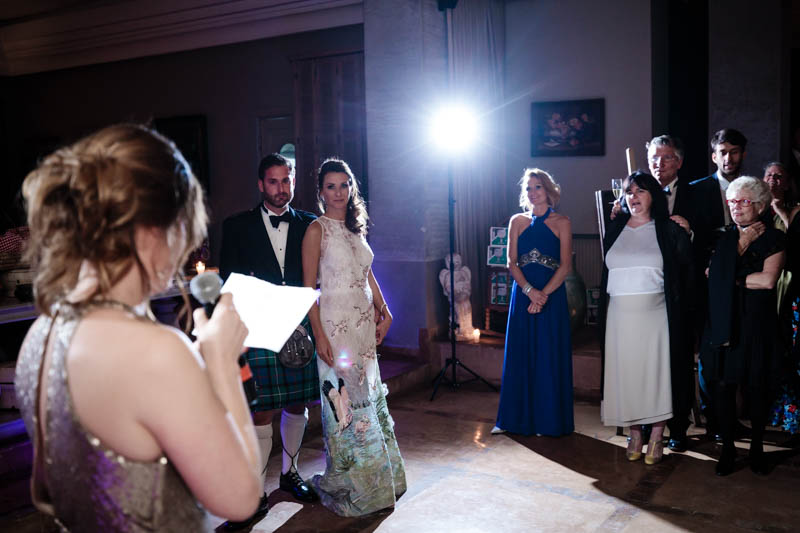 La soirée a d’abord débuté par de poignants discours ainsi qu’une magnifique interprétation de “Photograph” par la fille de la mariée. Cette chanson de Ed Sheeran donne toujours quelques frissons.